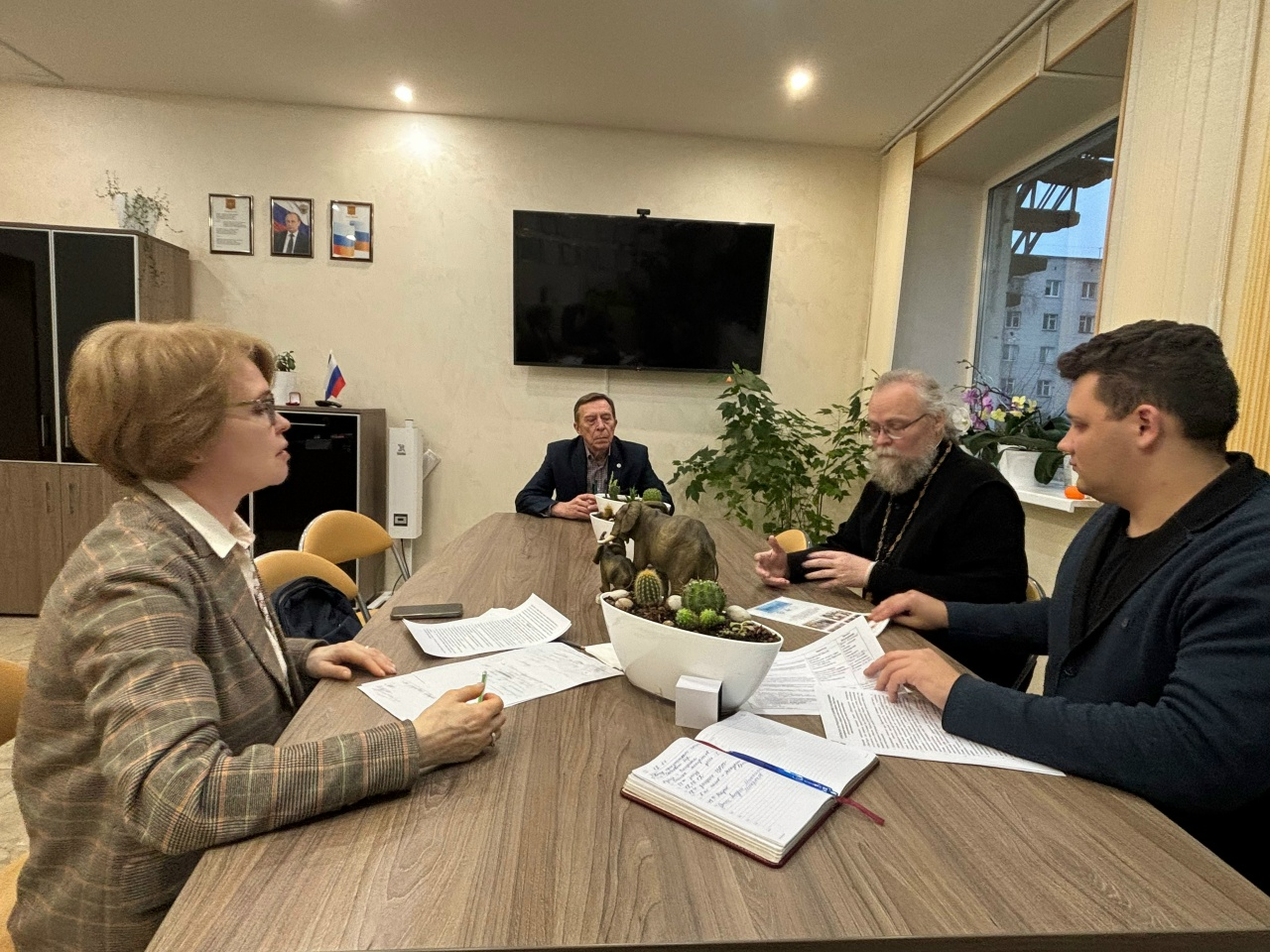 Далее для продолжения плодотворной беседы к участникам встречи присоединился Настоятель храма Преподобного Серафима Саровского в г. Сосновый Бор, Протоиерей Андрей Михайлович Мекрюков.